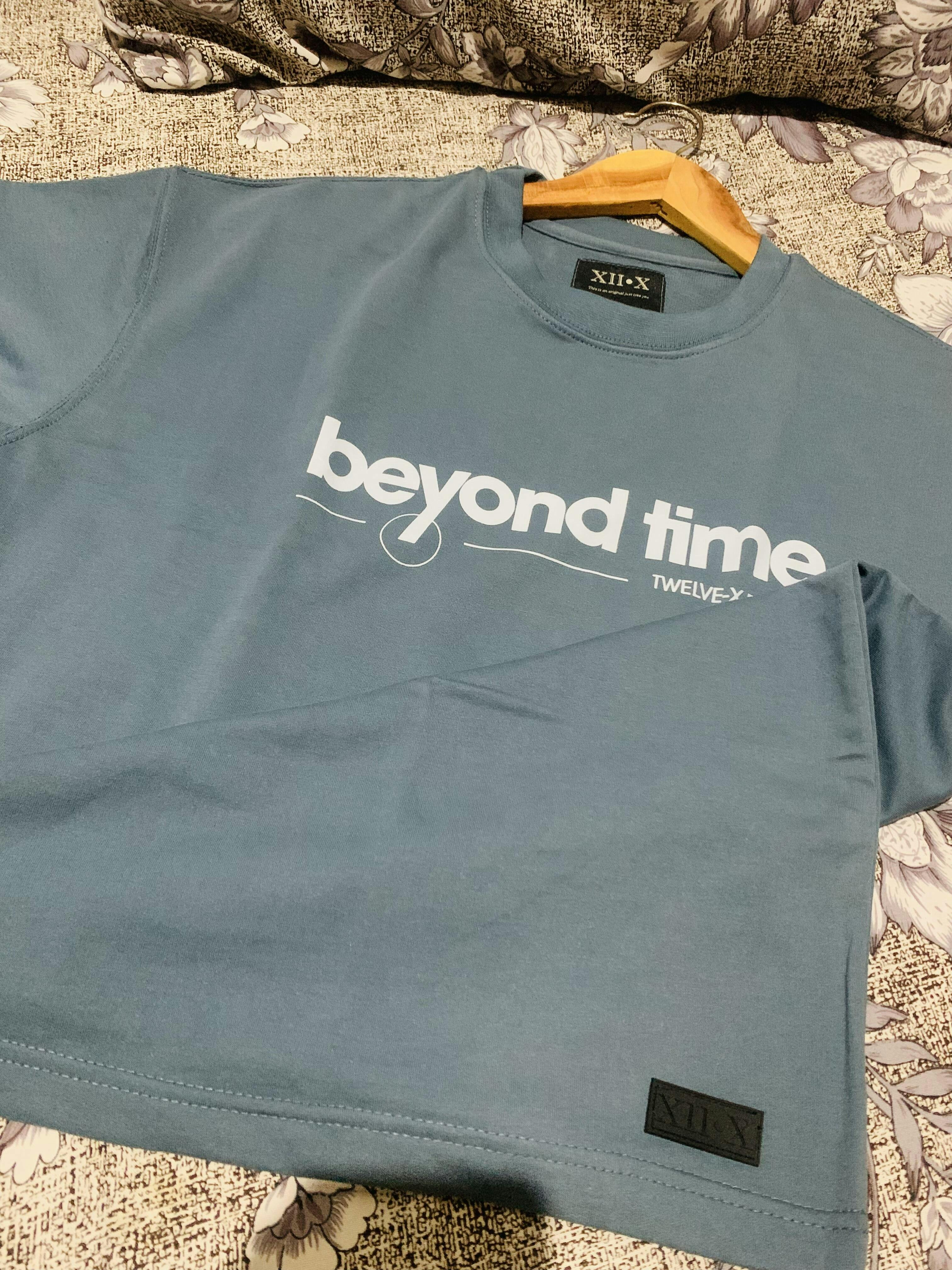 * White DTF (Beyond Time) print – front mid-chest & vertical right back