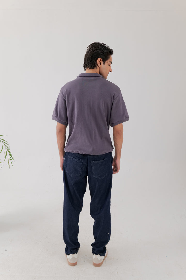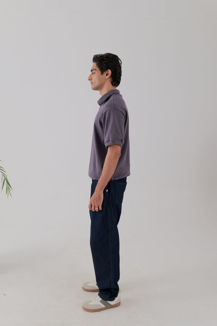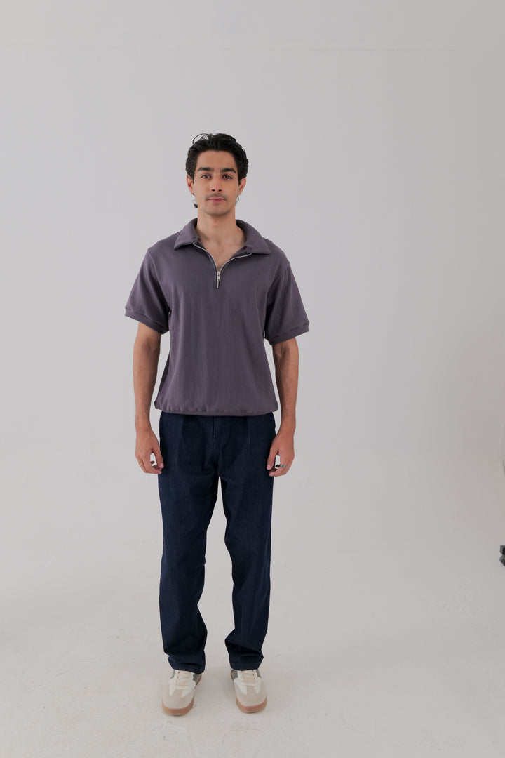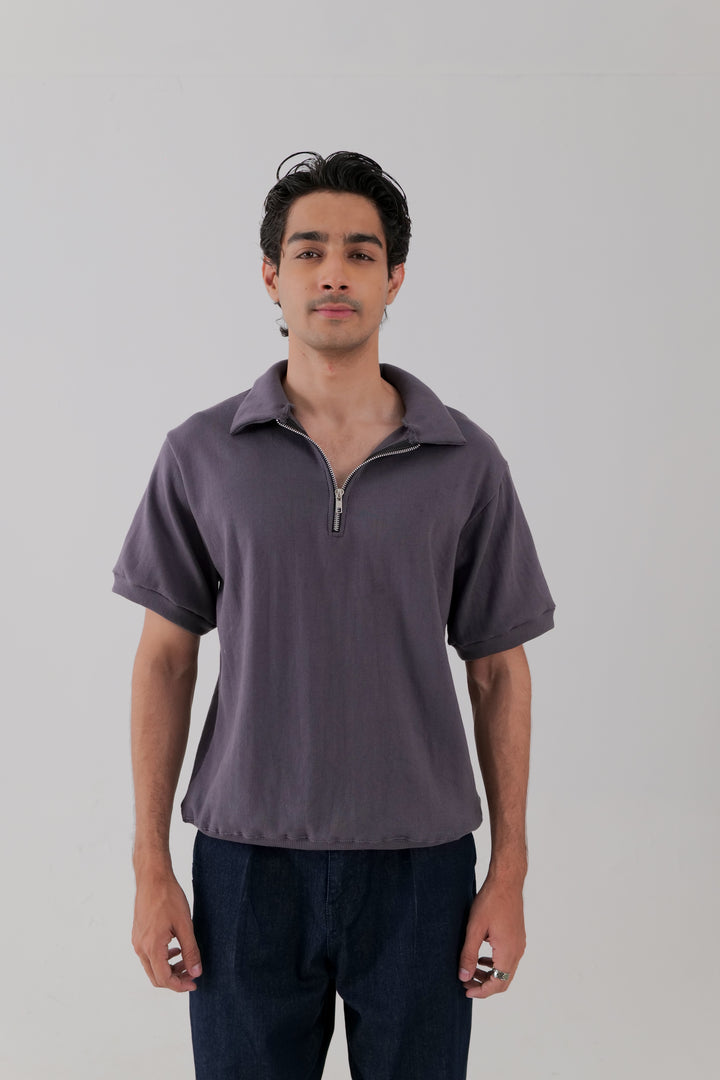 A relaxed half-zip polo in ribbed fabric, designed with a flat collar and slight drop shoulders. Finished in Vintage violet for a versatile, understated look.